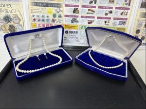さて本日はパールのネックレス・イヤリングをお買取いたしました。