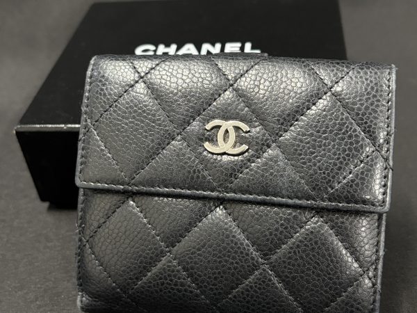 今回お持ち込みいただいたのは、「シャネル」のコンパクトな二つ折り財布でした。近年はキャッシュレス化の影響もあり、小さめの財布の人気が高まっていることから、中古市場でも需要が高いアイテムとなっています。