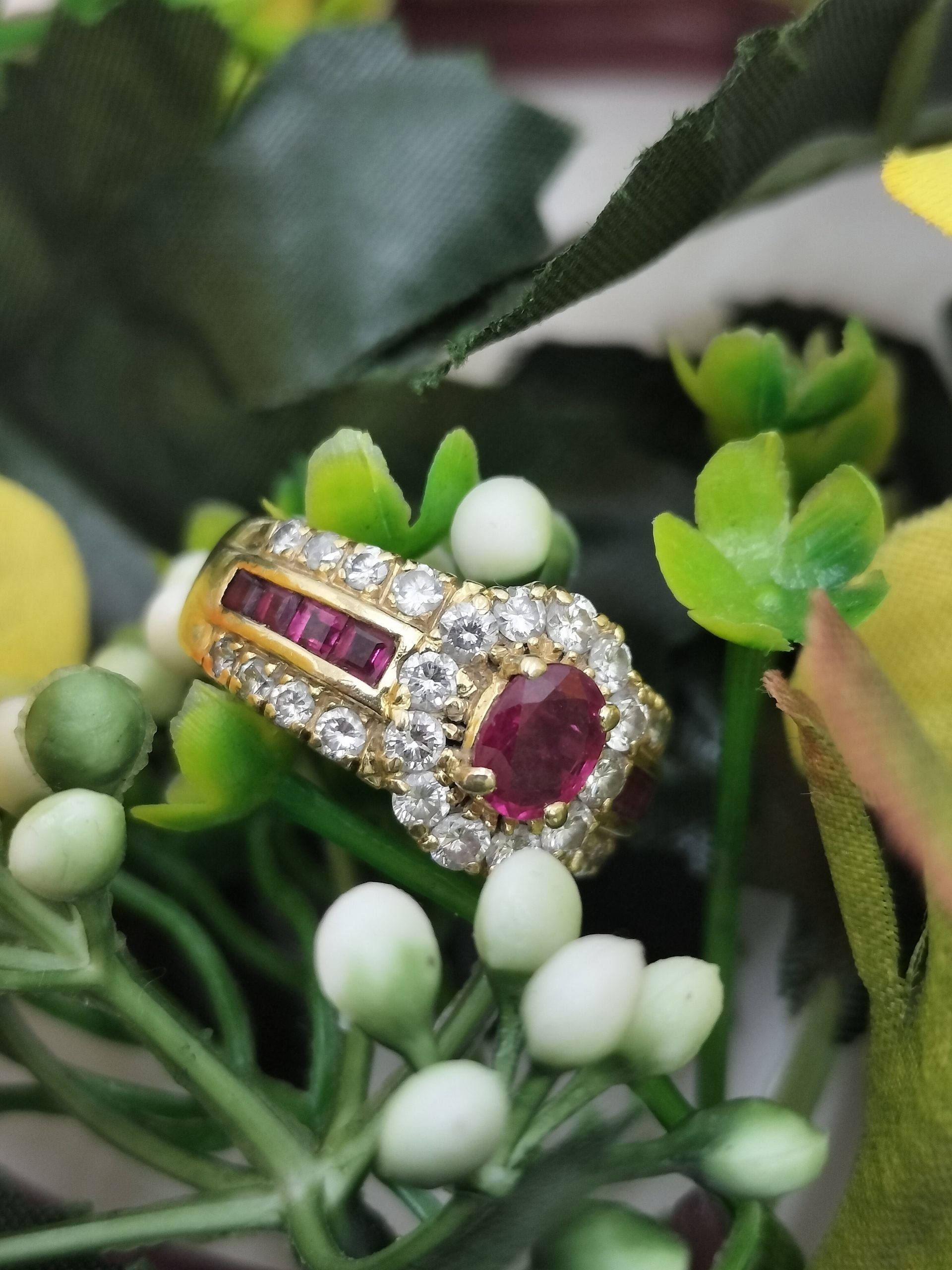 こちらは、『K18 リング ルビー1.34ct MD1.00ct 7.3g』になります。