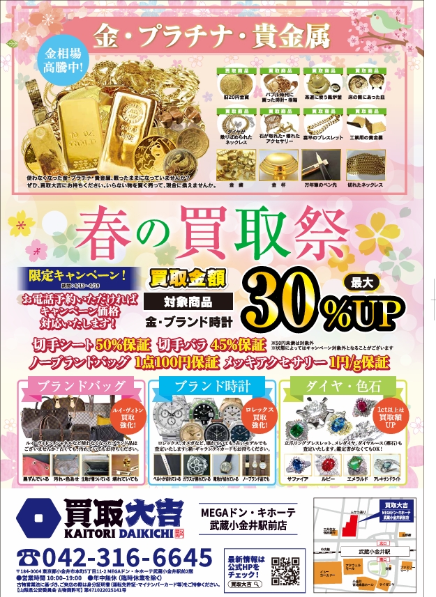『買取大吉 MEGAドン・キホーテ武蔵小金井駅前店』限定、ジュエリーの高価買取を実施しております!!