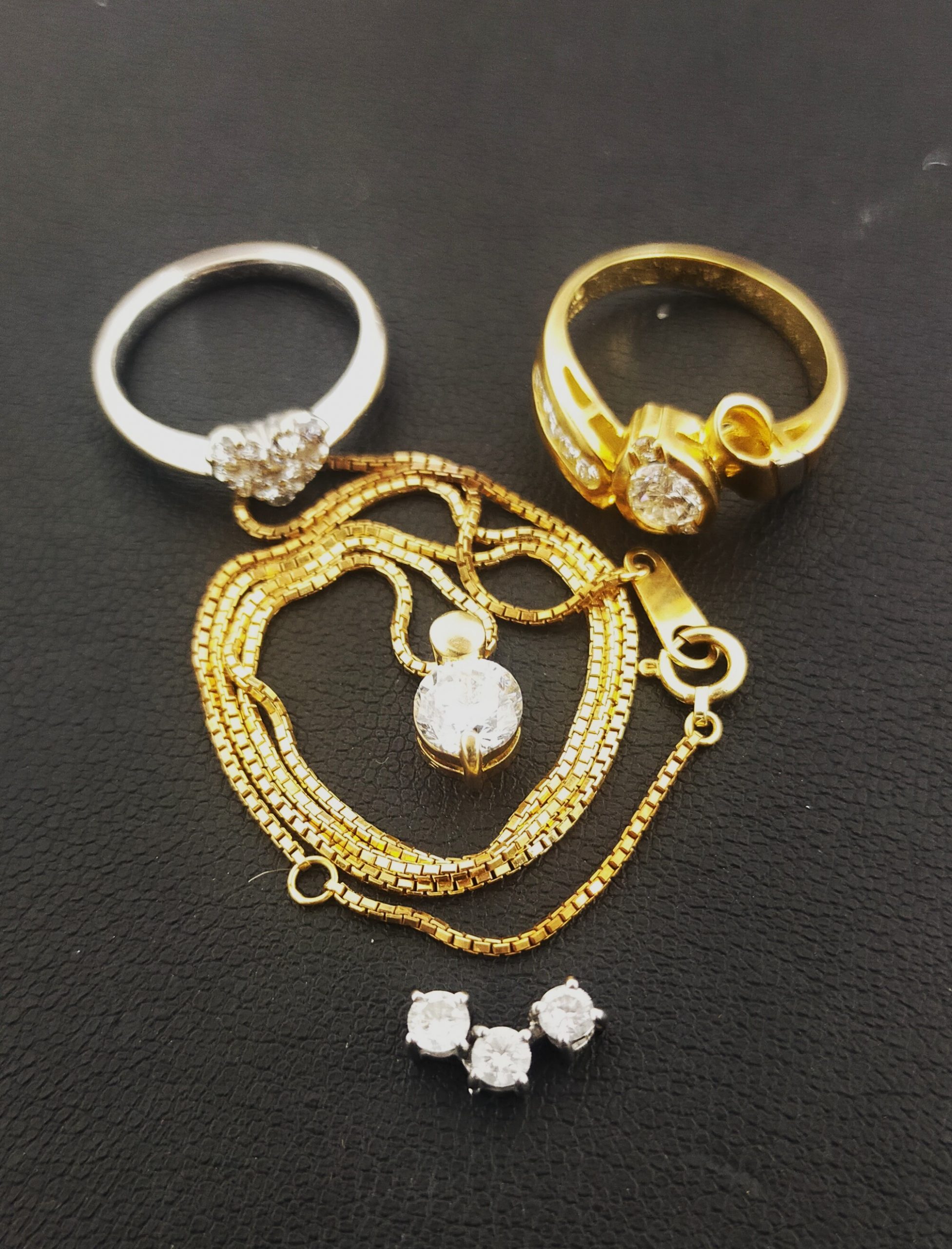 本日はこちら、ダイヤモンドのついた貴金属をおまとめで高価買取りしました!