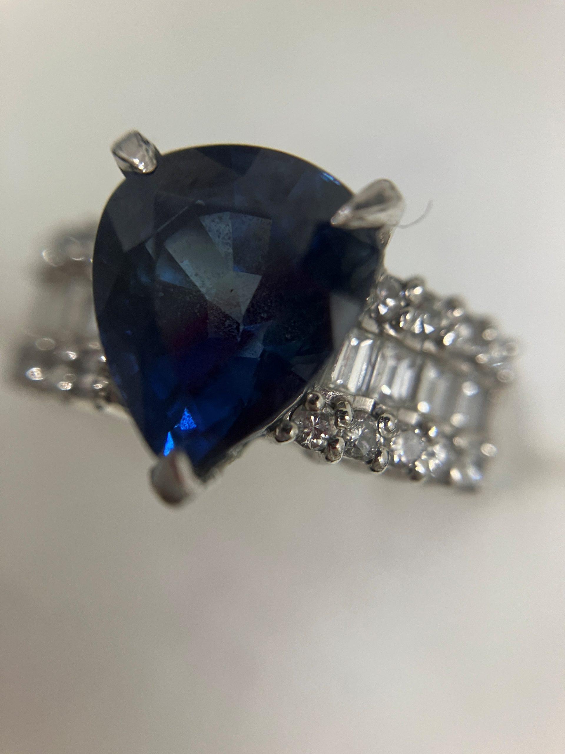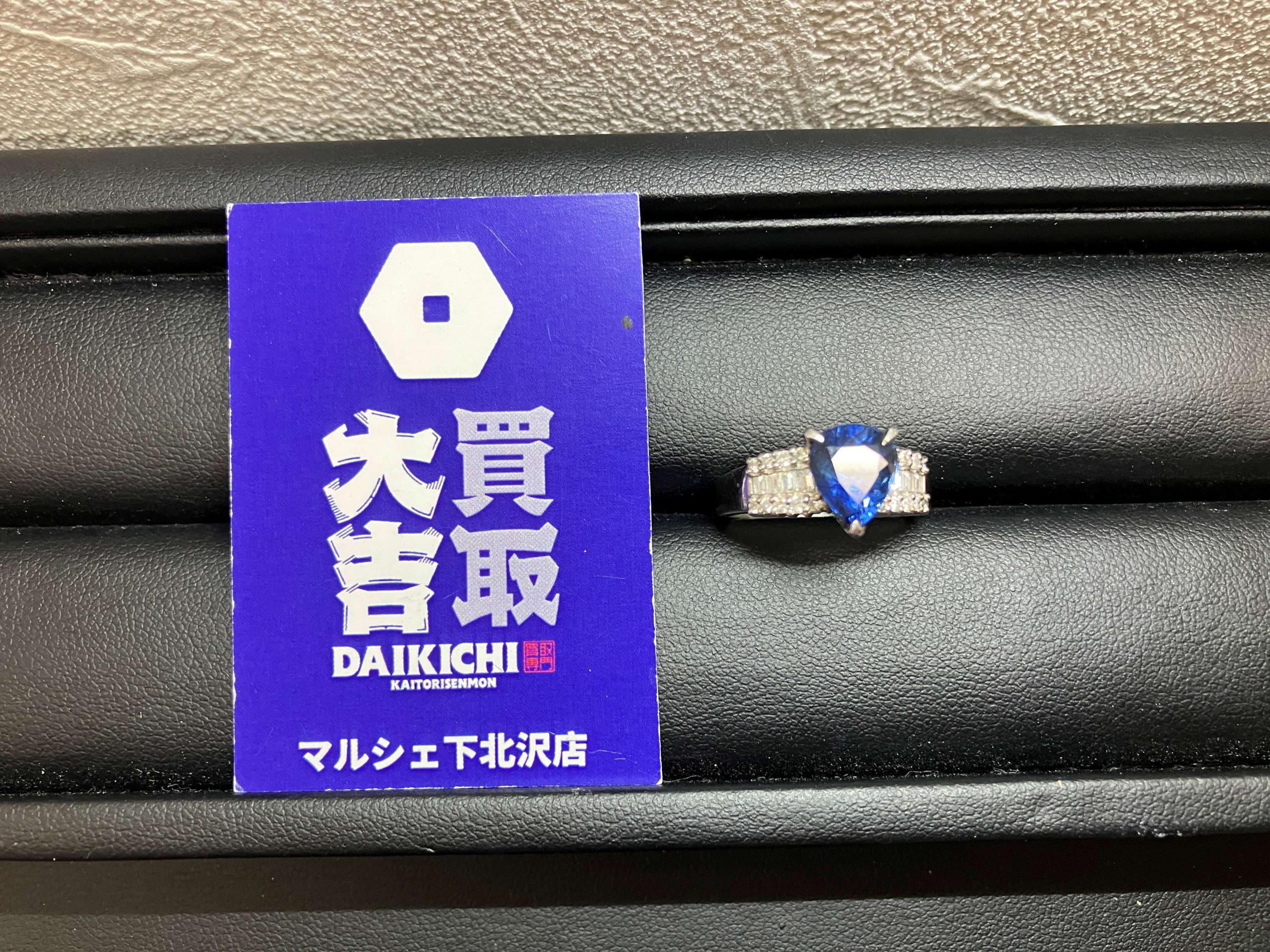 サファイヤとメレダイヤのついたプラチナリングをお買取いたしました。