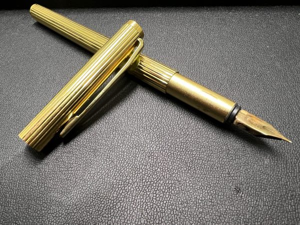 ゴールドのペン先が特徴的な万年筆で、書き味の良さと高級感が魅力のお品物です。