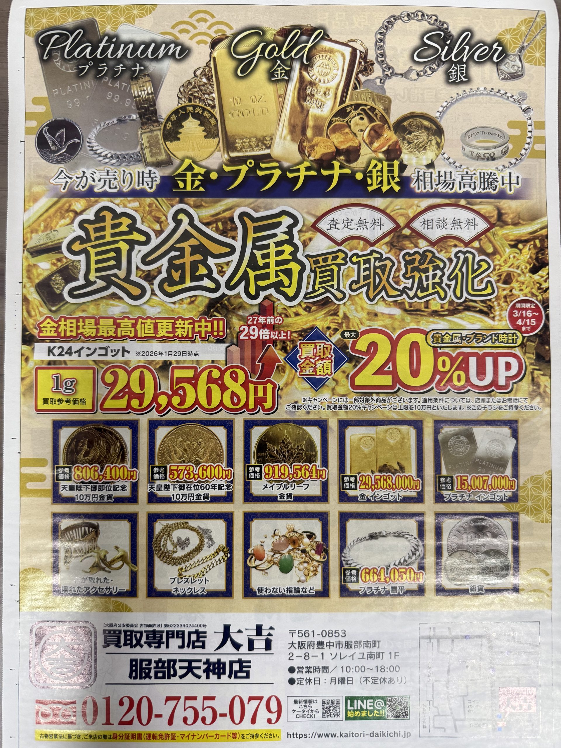 豊中付近で買取店をお探しの方は、ぜひ大吉服部天神店まで♪