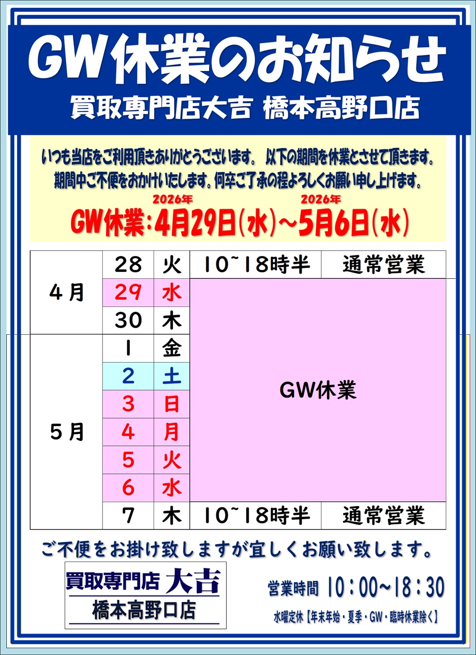 ◆買取専門店大吉 橋本高野口店◆