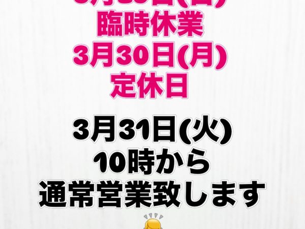 3月31日(火)10時~通常営業となります!