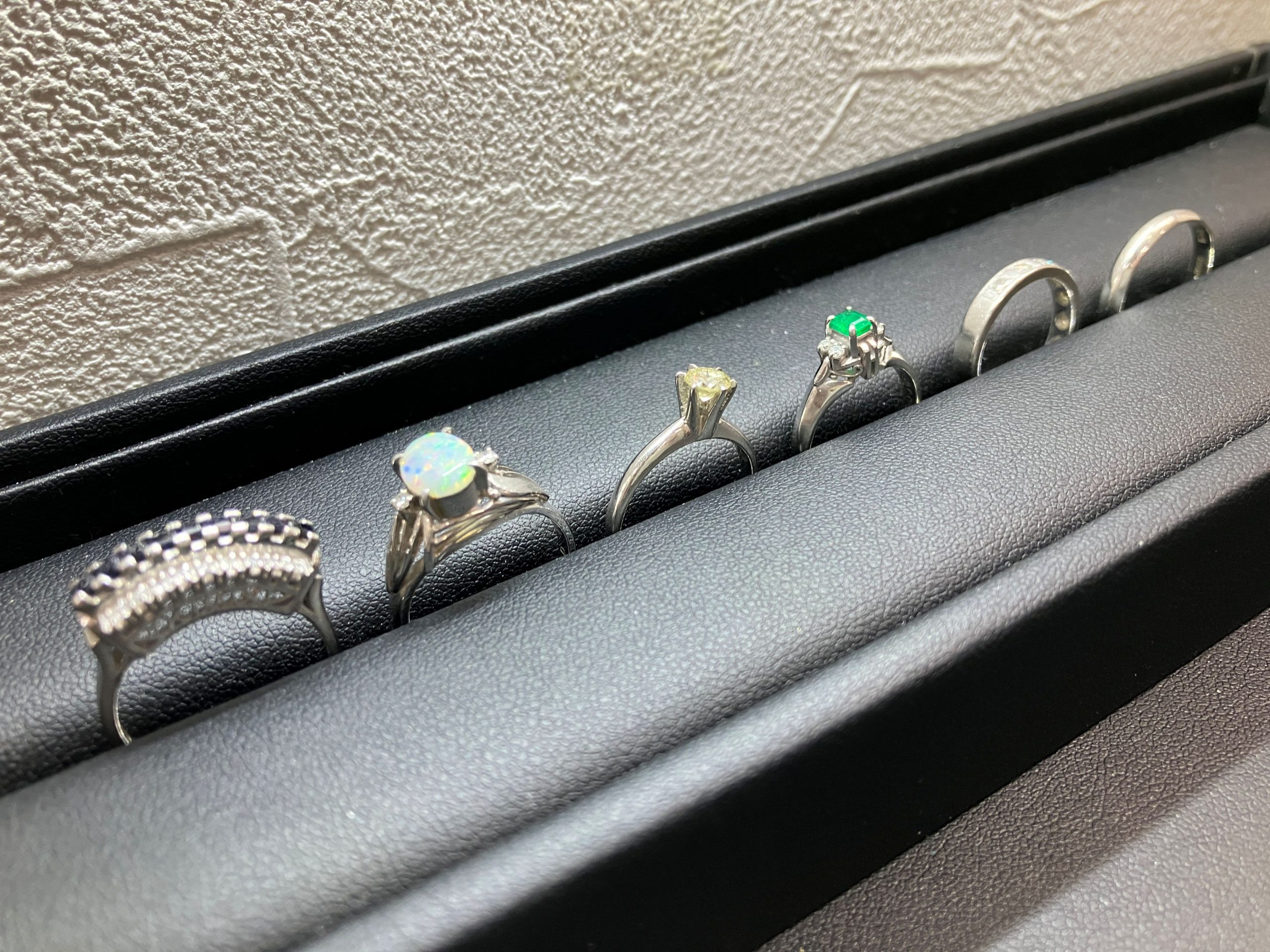 一番右のシンプルなデザインのリングは大変珍しいプラチナ1000の指輪でイニシャルと日付が刻まれておりました。