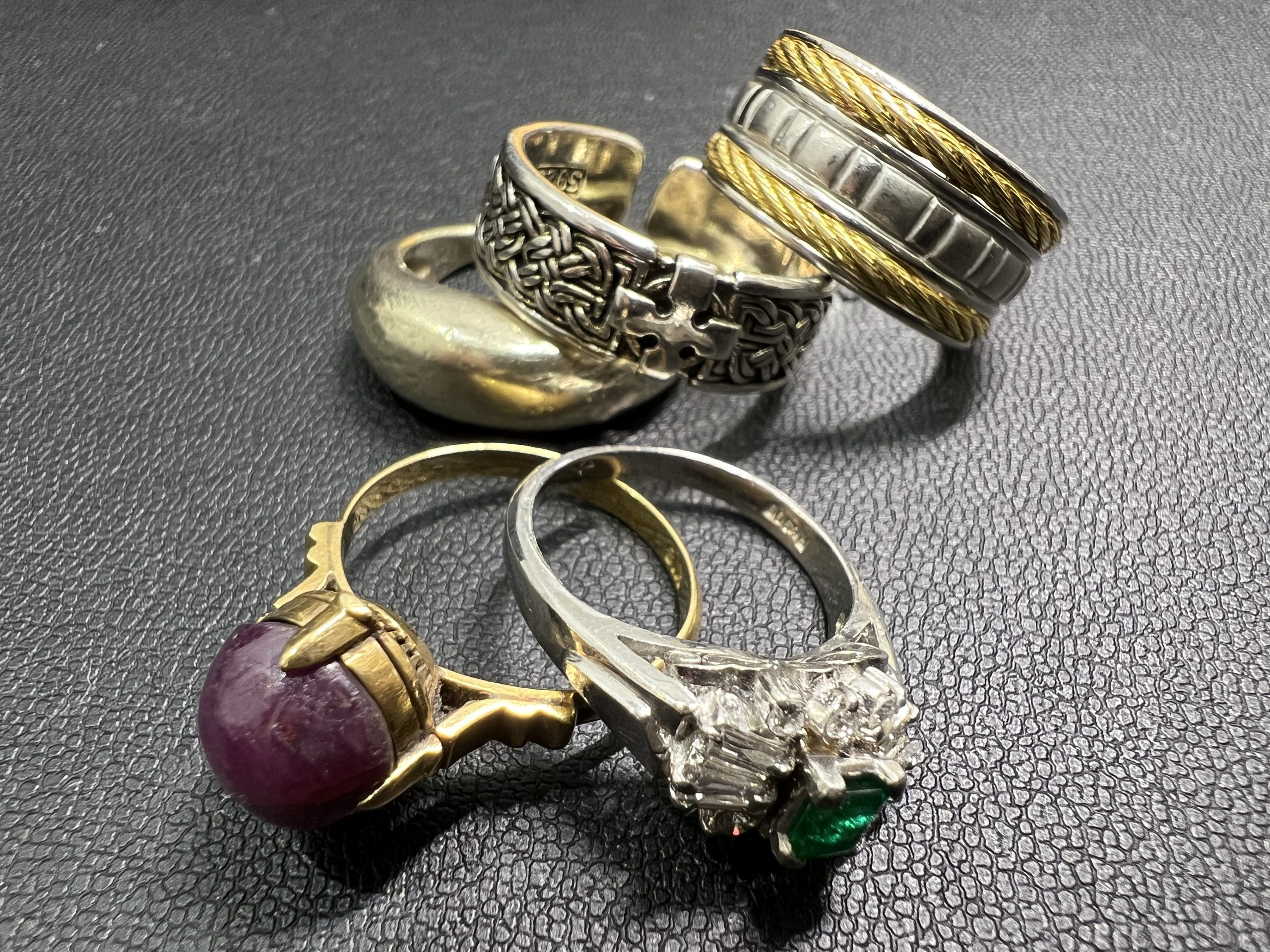 エメラルド・ルビー・ダイヤモンドなどがあしらわれたデザイン性の高いリングをお持ち込みいただきました😊