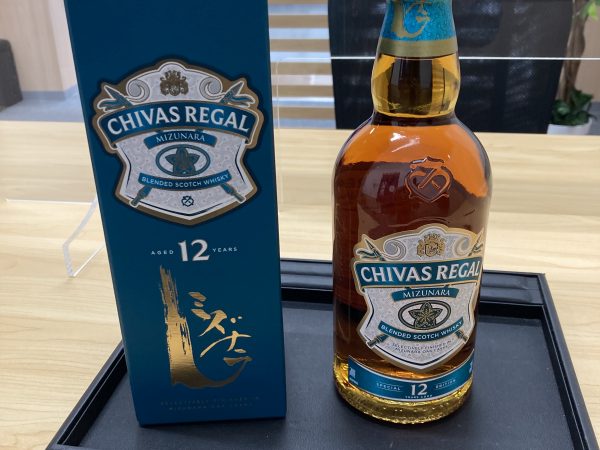 先日のお買い取り紹介は、美しいブルーのパッケージが目を引く**「シーバスリーガル 12年 ミズナラ」**です!🌊✨