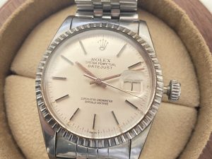 写真のロレックスはオイスターパーペチュアルデイトジャストという定番の人気モデルの為高価買取となりま