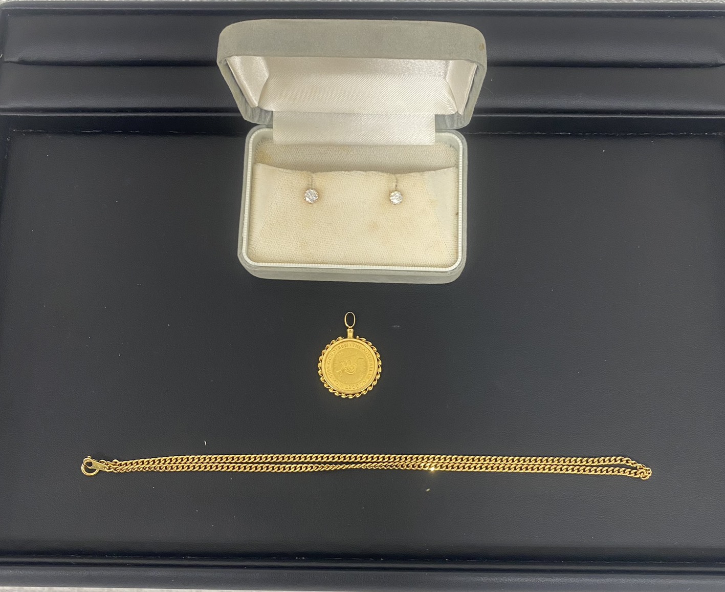 いつもご来店頂いているお客様よりお買取させて頂いた、カンガルー金貨のネックレスとダイヤのピアスのお写真です✨