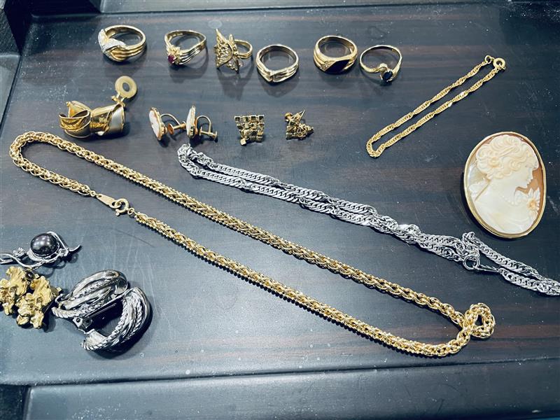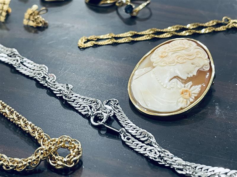 ゴールドネックレスにプラチナネックレス、22金のブレスレットに金枠のカメオ