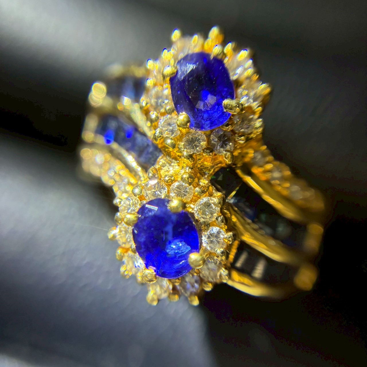 本日のk18サファイアダイヤリングの紹介です。