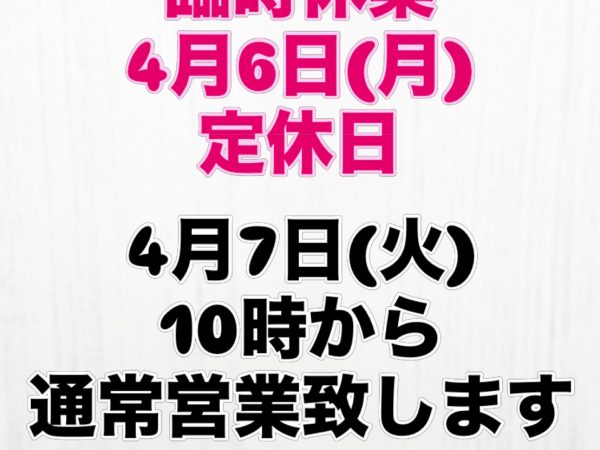 4月6日(月)、定休日です!