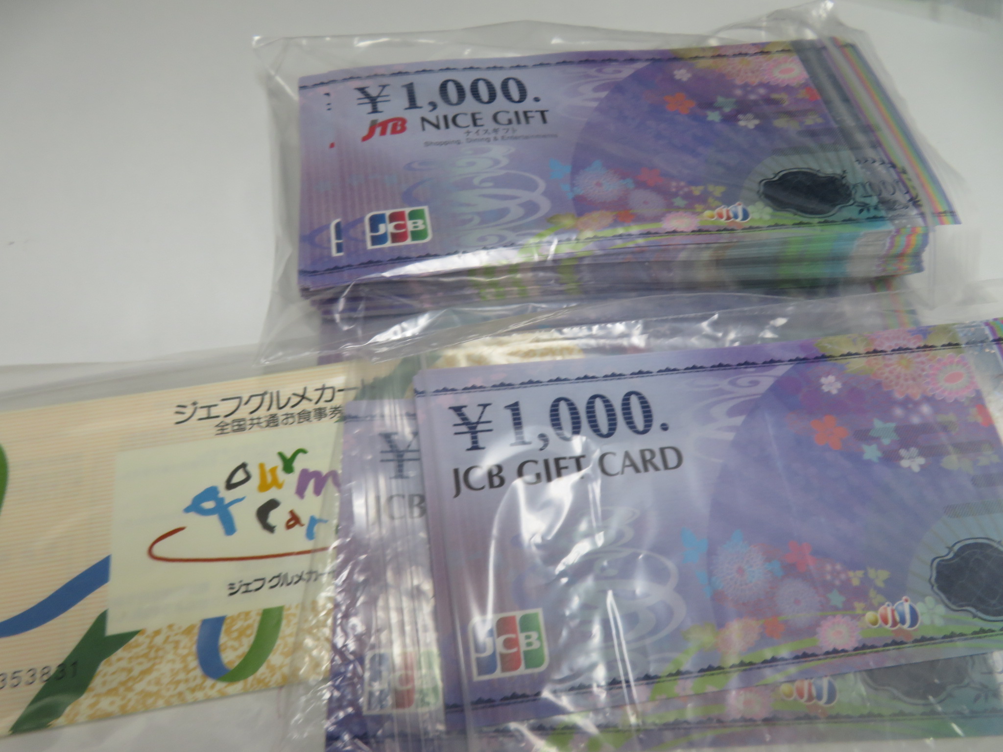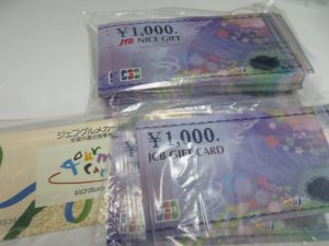 金券、商品券、JCBギフトカード、JTBナイスギフト、ジェフグルメカードです。