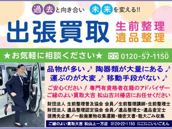 アドバイザー&生前整理講師在籍の 買取大吉 松山古川椿店にご相談ください♪