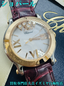 ジュエリーブランドであるショパールの腕時計、アクセサリーとしても人気の高いモデルとなっております✨