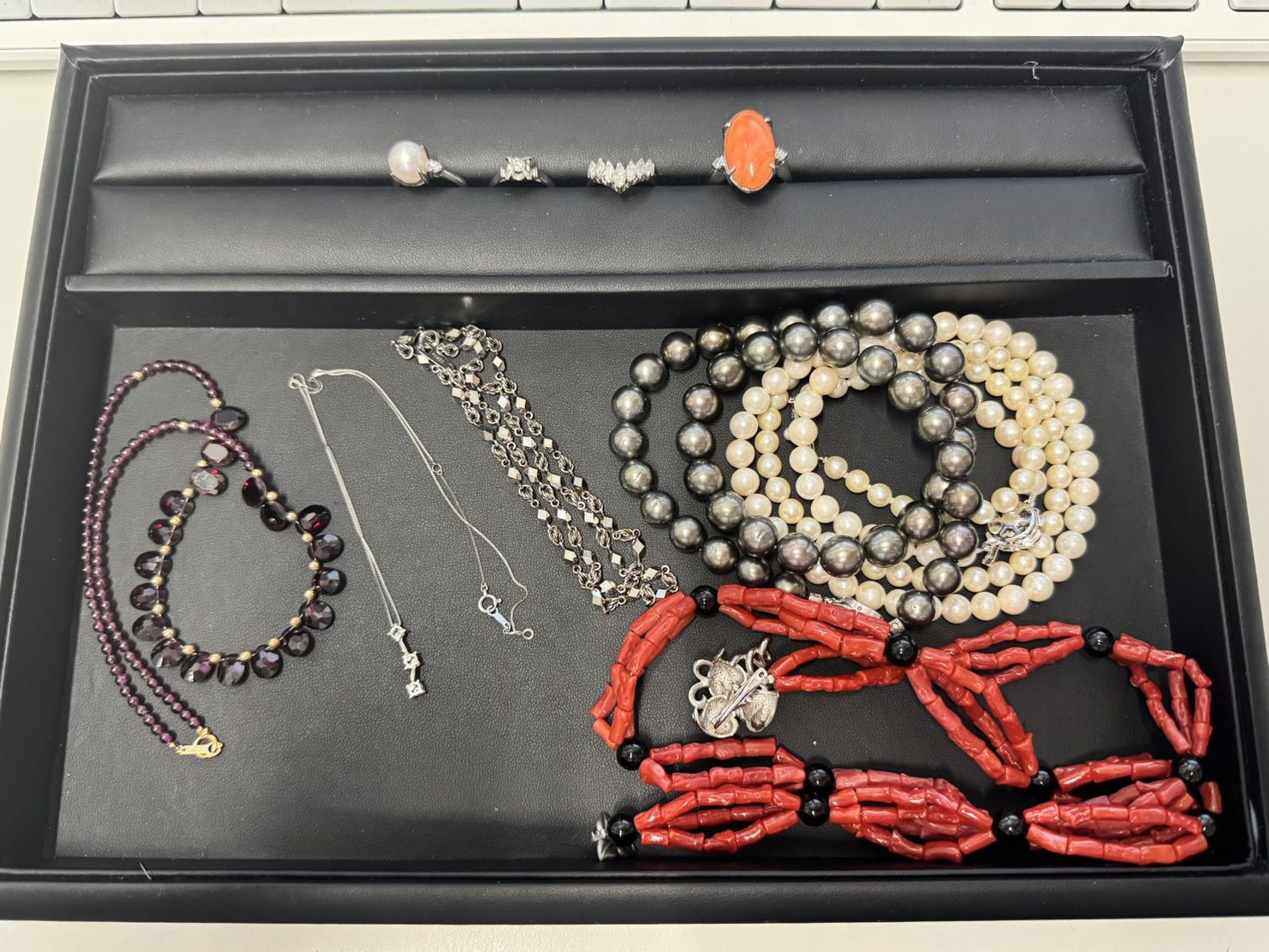貴金属やパールネックレス、珊瑚アクセサリーなどをお持ち込みいただきありがとうございます。ネックレスやリングはもちろん、デザインが古いものや使わなくなったアクセサリーでもしっかりと一点ずつ査定させていただきました。状態や素材の種類、重量を丁寧に確認し、現在の相場をもとに適正なご案内をしております。
