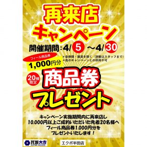 再来店キャンペーン好評に付き!開催中! | エクボ半田店