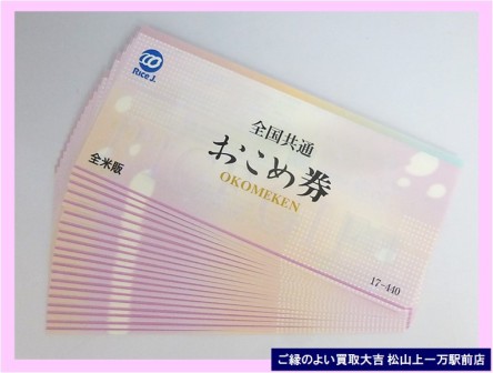 おこめ券 商品券 は!                        ご縁のよい買取大吉 松山上一万駅前店におまかせ下さい♪ | 松山上一万駅前店