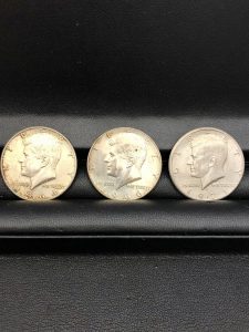 アメリカ35代目大統領、ジョンFケネディ氏の横顔が刻まれた50セント硬貨です。