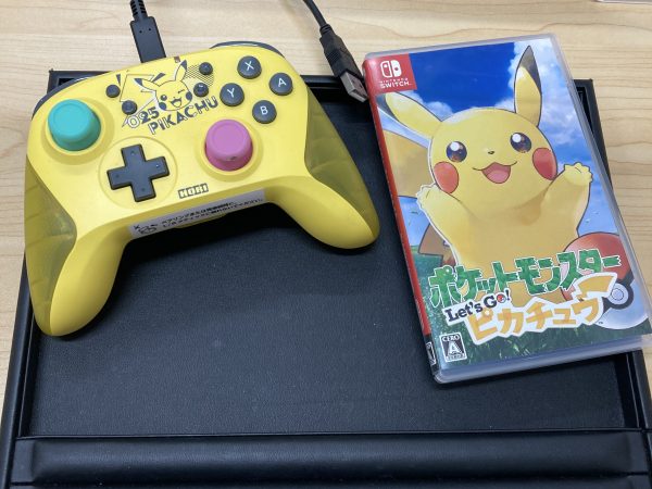 HORI製のピカチュウモデルのコントローラーは、色使いもポップでゲーム機周りが一気に華やかになりますね!『ポケットモンスター Let's Go! ピカチュウ』とセットでのお持ち込み、誠にありがとうございます✨