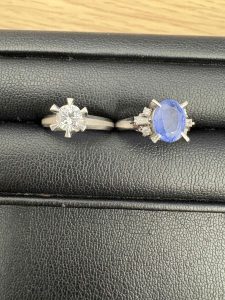 ダイヤモンドリングは婚約指輪とのことで思い出もあるお品物でしたのでバイヤーに価格交渉し、お客様のご満足していただける金額で買取できました。サファイアリングは貰い物とのことでしたが、2カラットもあり、こちらもお客様のご満足してもらえる金額で買取させていただきました。