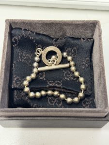 グッチはイタリアを代表する世界的ラグジュアリーブランドであり、シルバーアクセサリーは年代を問わず安定した人気があります。特にトグルクラスプのボールチェーンブレスレットはシンプルながらも存在感があり、コレクターの方からの需要も高いアイテムです。そのため、他店で断られてしまったアイテムや、古いデザインのジュエリーでも、当店では積極的にお買取りをしております。