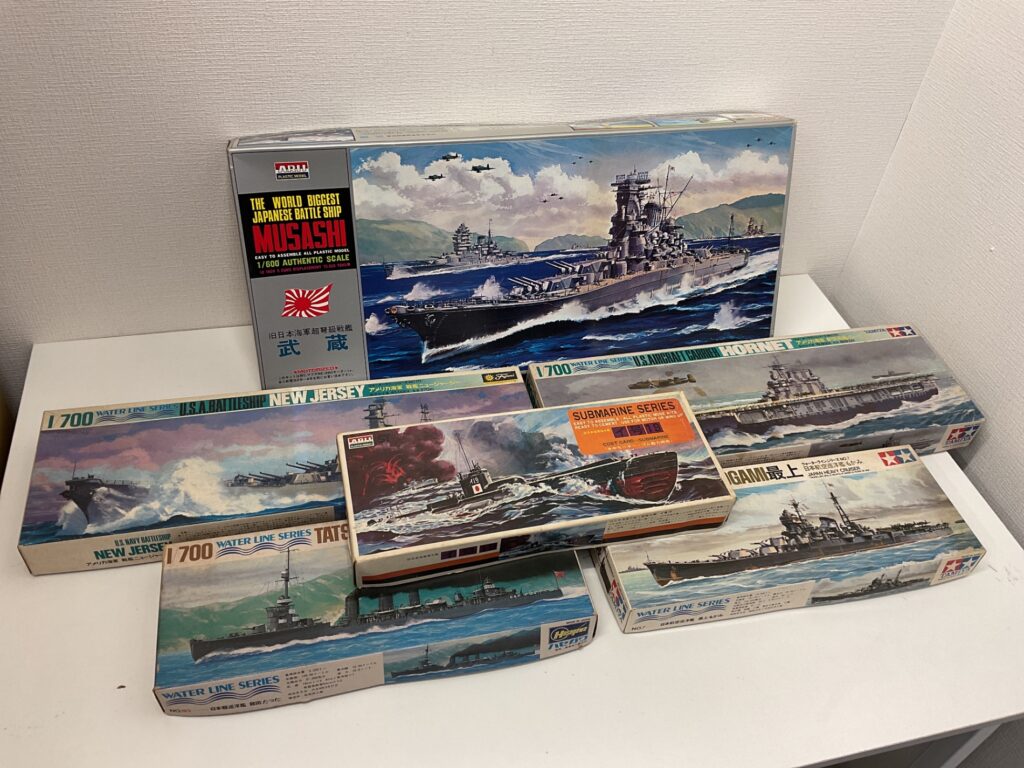 今回は、ちょっと懐かしいプラモデルをまとめて査定させていただきました。中でも目を引いたのが、TAMIYAの戦艦シリーズ。模型ファンなら思わず反応してしまう、あの定番ラインです。