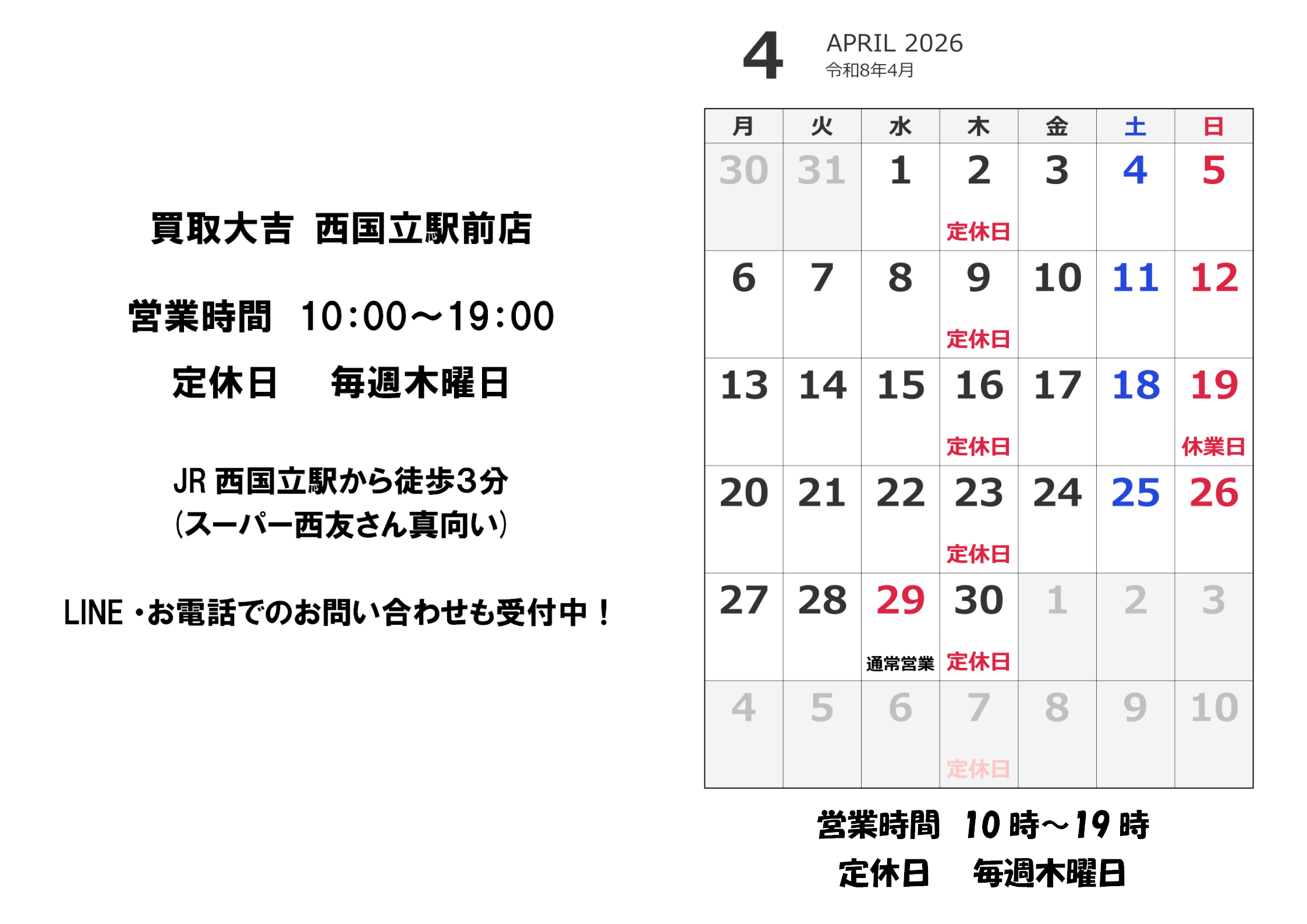 ※29日(水・祝)は通常通り営業します!