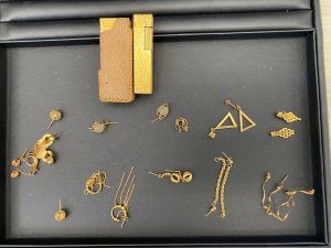 たくさんのピアスとライターを