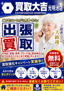 出張買取のお買取りなら、豊富な買取実績が自慢の買取大吉 光明池店にお任せくださいませ!