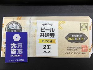 買取大吉» 店舗紹介» マルシェ下北沢店» マルシェ下北沢店 店長ブログ» 【即現金化いたします】頂き物のビール券・・・使わないまま自宅に眠っていませんか?