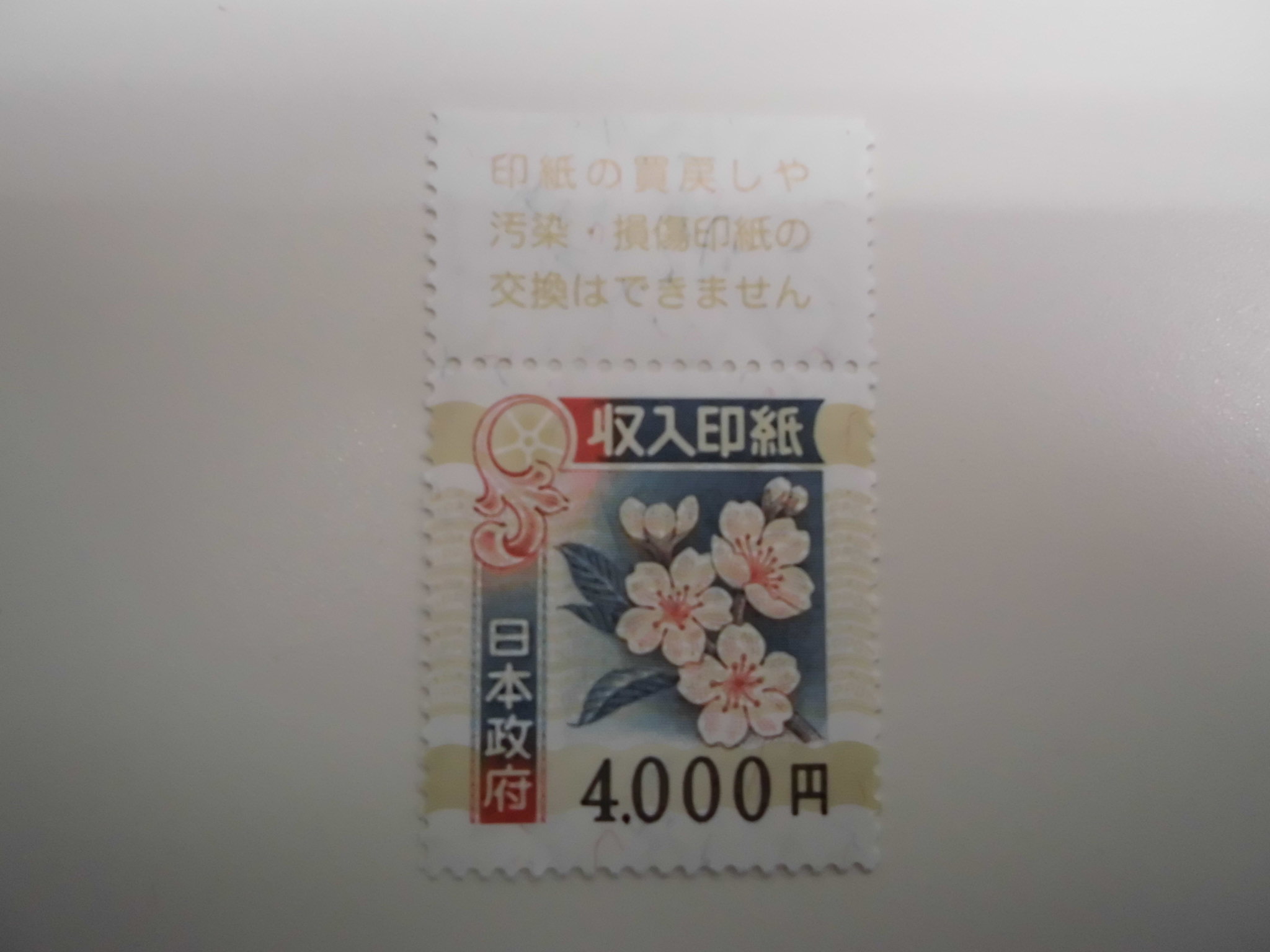 先日、4000円分の収入印紙をお買取り致しました