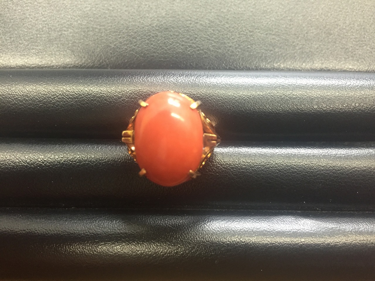 本日は福山蔵王店にて、珊瑚付リングを買取りました。