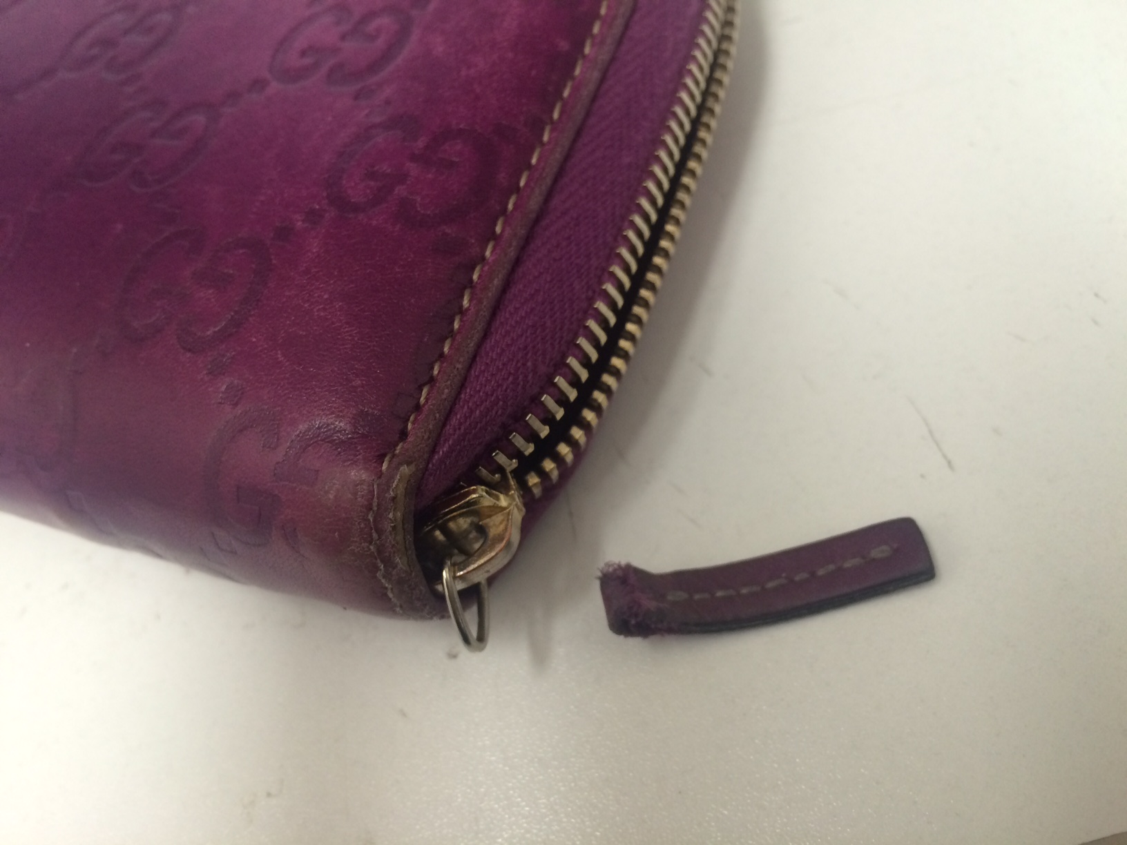 本日は壊れたブランド品gucciのラウンドファスナーをお買取りさせて頂きました。