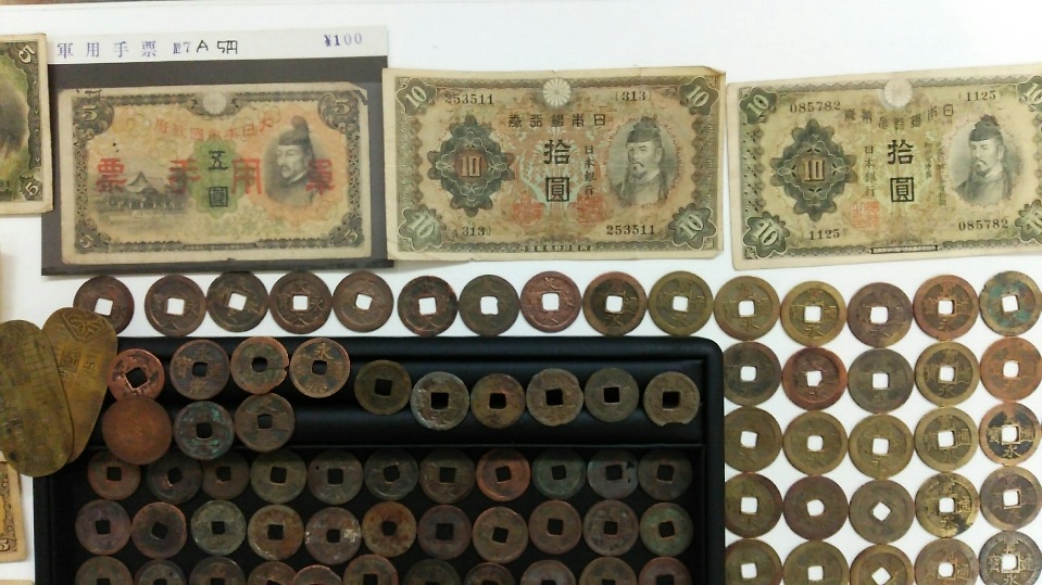 お札、寛永通宝など