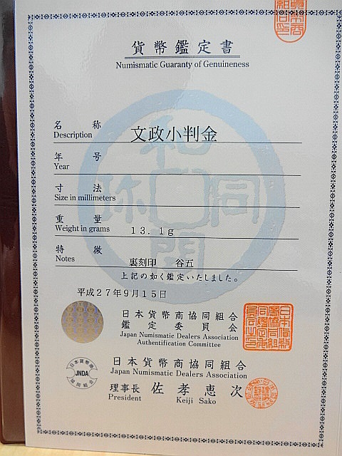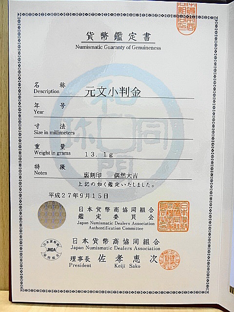 どちらも高額ですが特に元文小判の方は裏面に大吉の墨書きがありかなり高額になります。