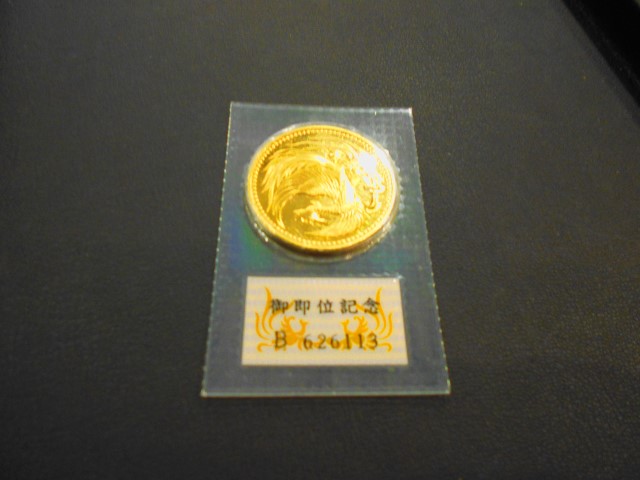 この記念硬貨(10万円金貨)は天皇陛下御即位記念10万円金貨です。