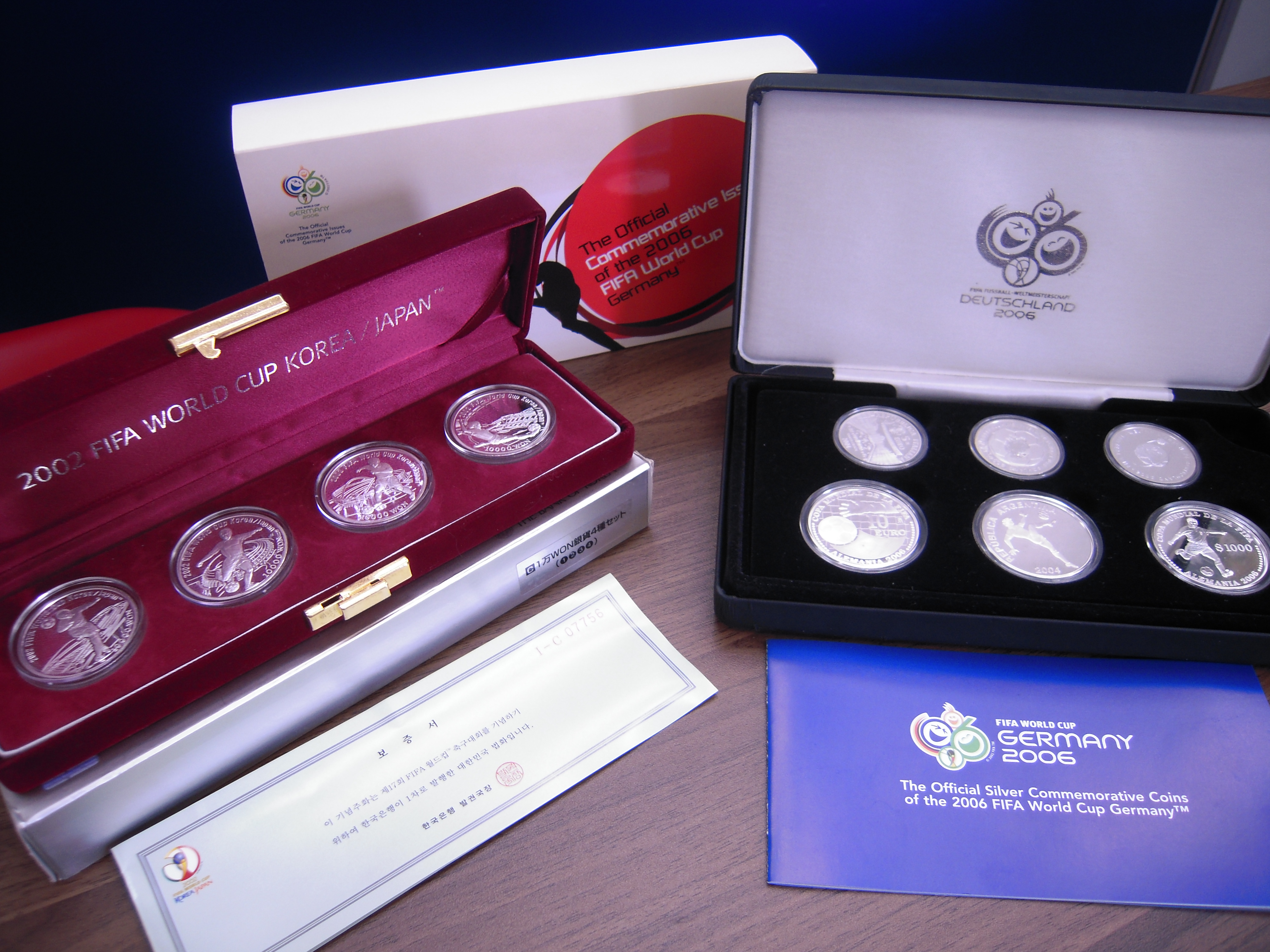 2002年の日韓ワールドカップ、2006年のドイツワールドカップを記念して販売されたメダルセットです
