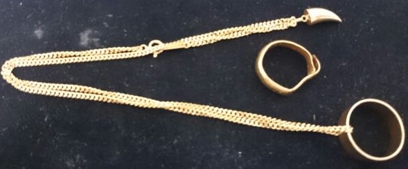切れてしまっている金のネックレスも