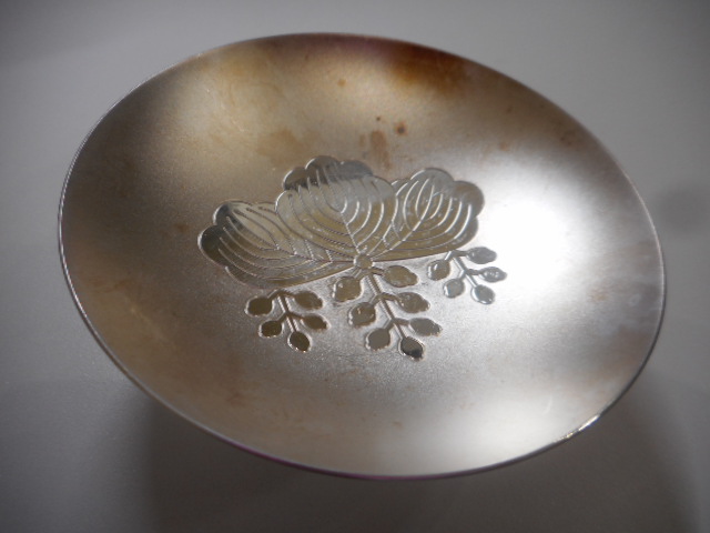 写真のように変色があっても純銀の銀杯の