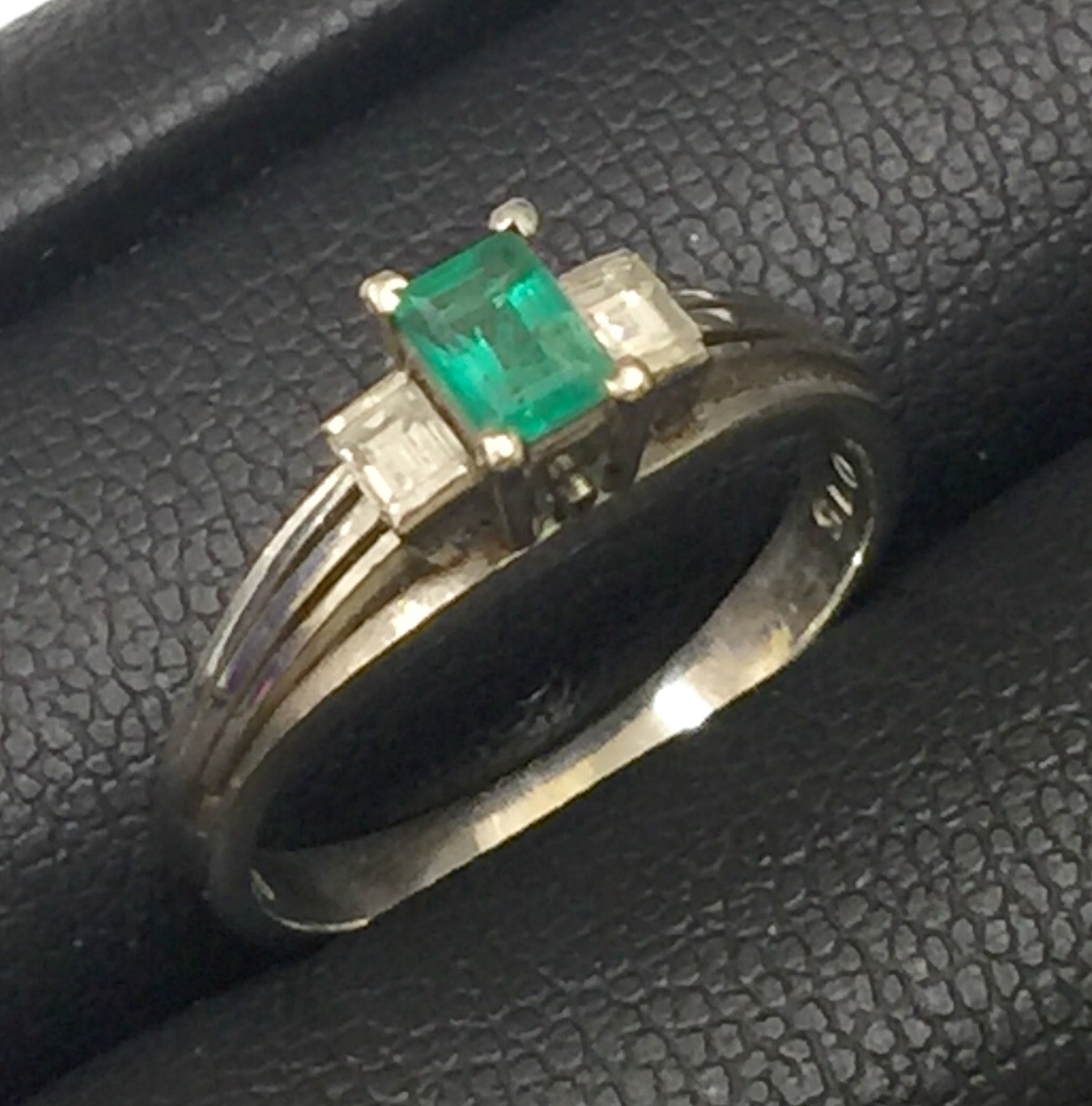 画像はエメラルドとメレダイヤがあしらわれたプラチナリングです。