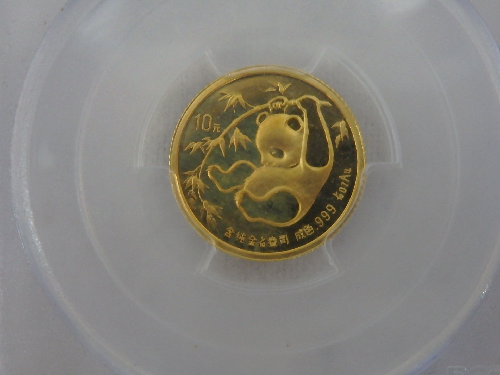 こちらは中国の金貨になります。1/10OZ K22金のパンダの金貨です。高額査定でお買取させて頂きました。