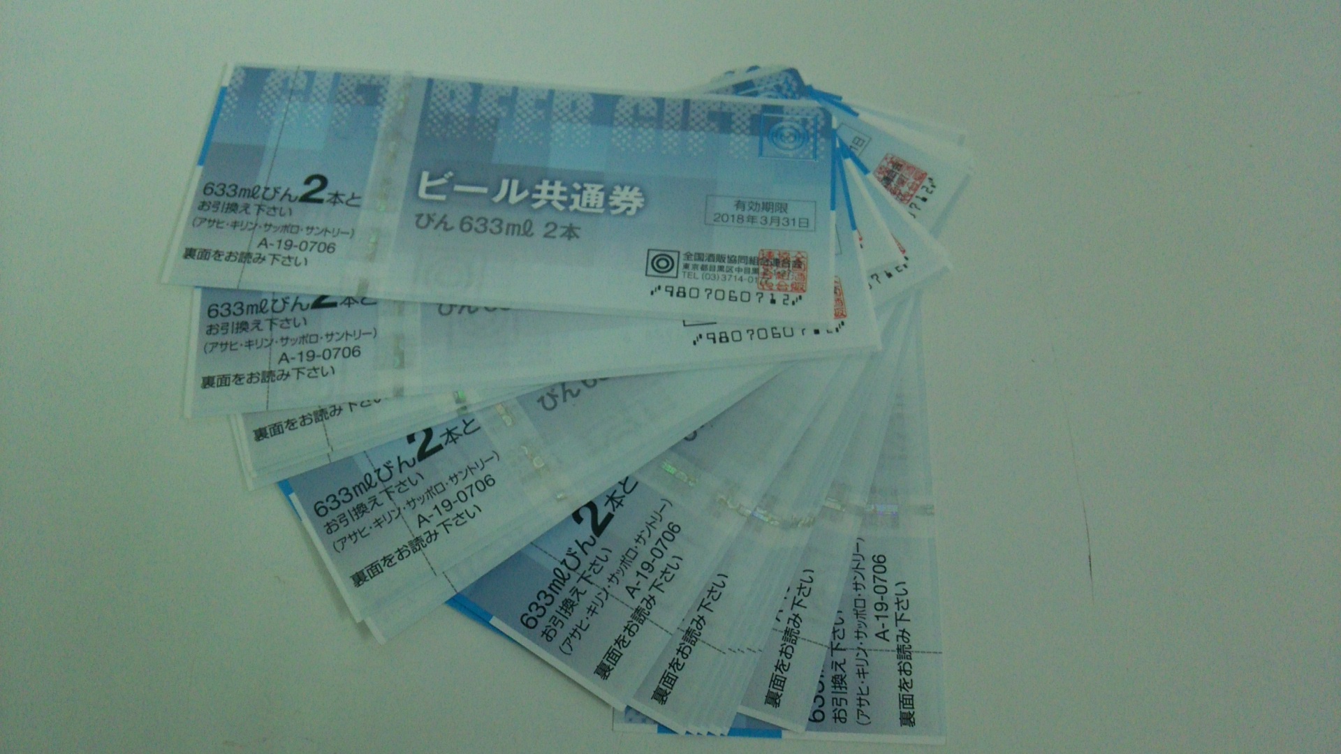 こちらは有効期限が2018年3月31日までのビール券になります。