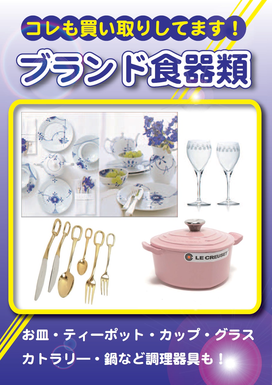 ブランド食器や調理器具も高価買取しています。