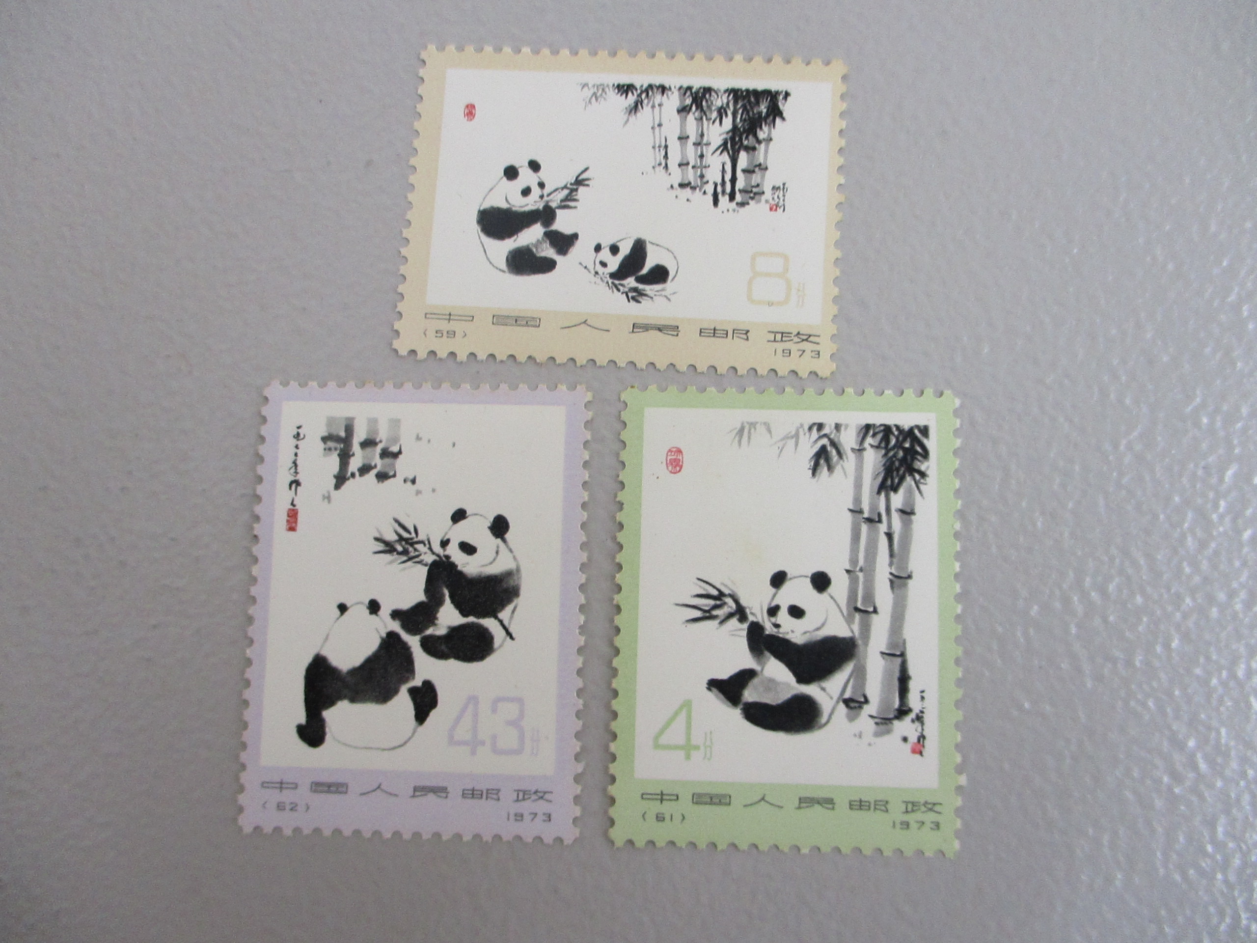 中国切手の中でも人気のパンダ切手6種類シリーズの3種類です。
