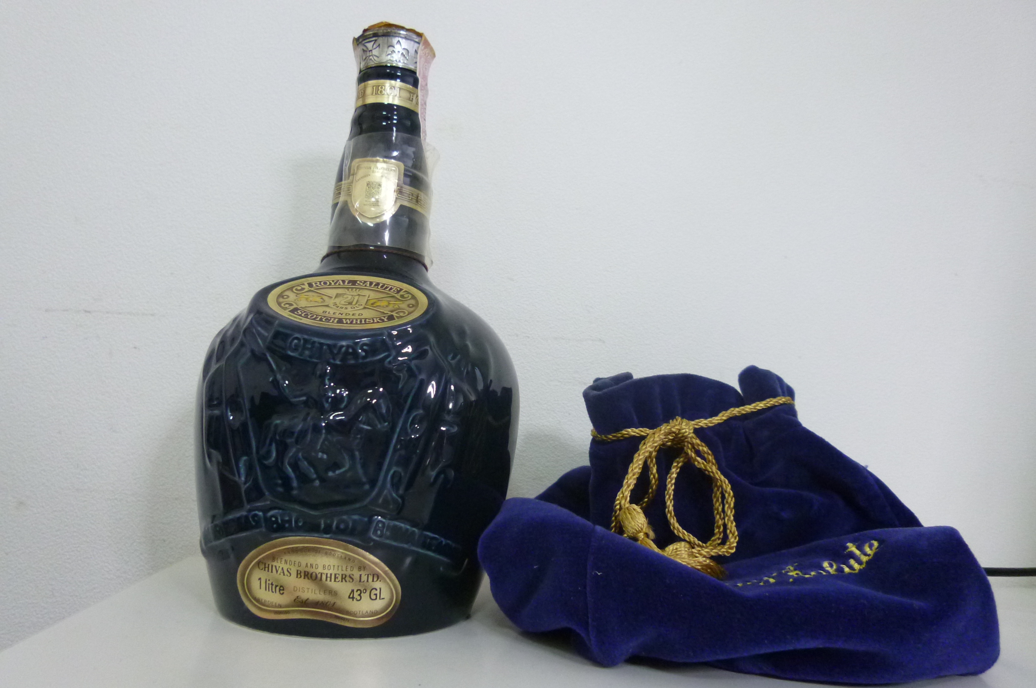 こちらのお品、ROYAL SALUTE 21年 青 1000ml 43度でございます。