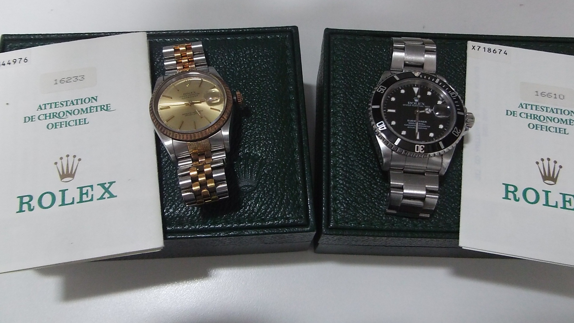 ロレックスのデイトジャストと、ロレックスサブマリーナです。