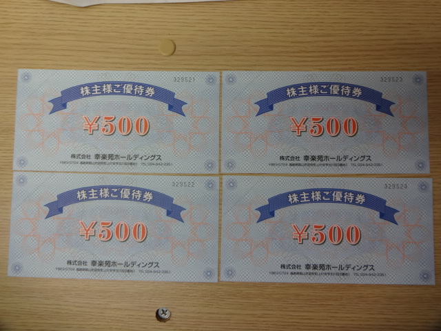 お買取させて頂いた株主優待です。